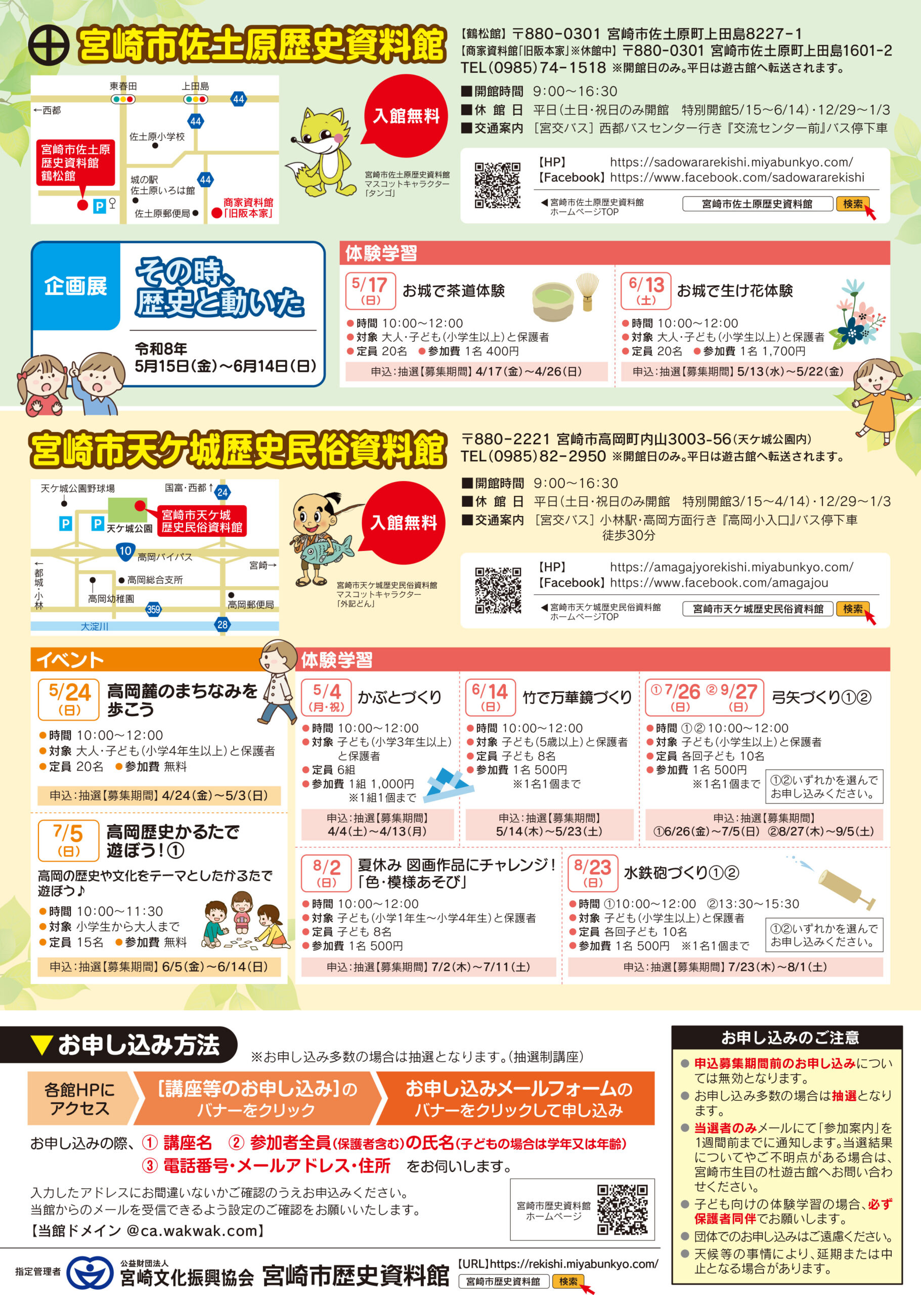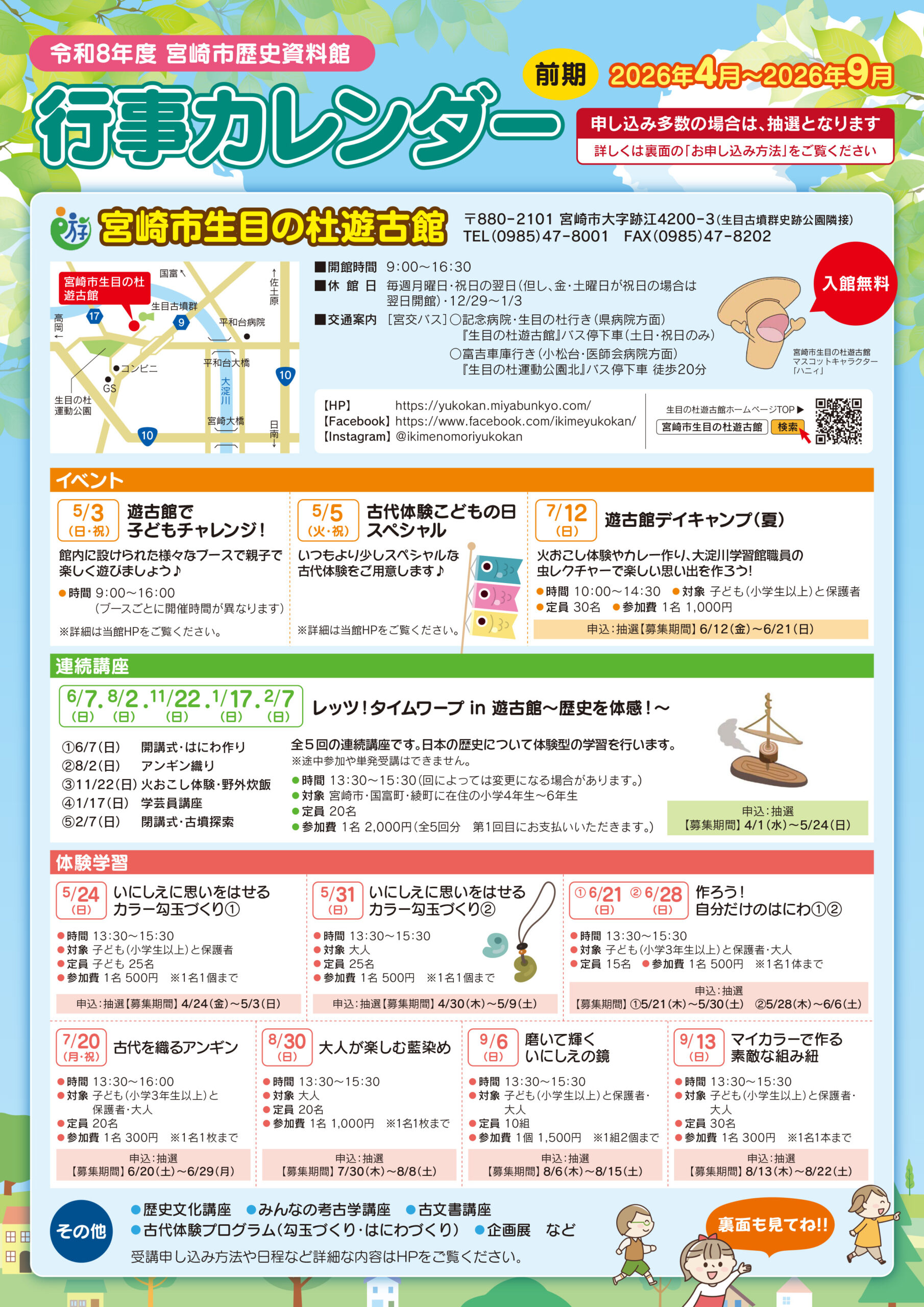 | * | 行事カレンダー(表)生目の杜遊古館 | 行事カレンダー(裏)佐土原・天ケ城・申込方法 |